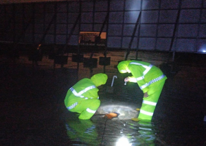 安保人员提前在防汛点位及易积水坡道口共码放沙袋600多条,为商铺提供防汛沙袋160余条,各岗位配备雨衣雨鞋80余套,此外还准备了潜水泵、手电、铁锹、撬棍、三合一吸水车、防汛挡水板等各类物资,启用潜水排水泵6台,共排水约8000多立方。