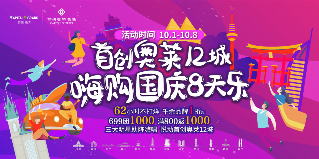 首创奥莱本轮活动将从10月1日开始并持续8天,分别以“国潮风尚音乐节”、“万国荟萃嘉年华”、“电音联动十二城”等契合国庆节、中秋节氛围的内容为主题。
