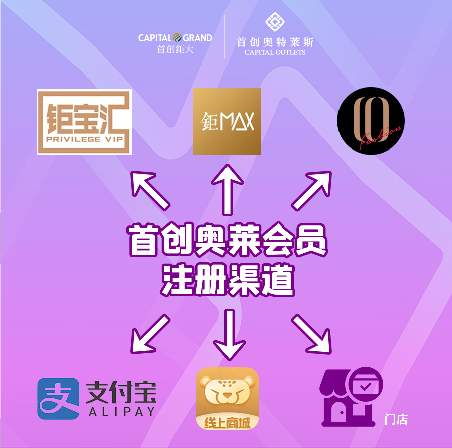 注册渠道上,无论消费者在钜宝汇微信小程序、首创奥莱线上商城微信服务号、CO时尚微信服务号、首创奥莱支付宝小程序、首创奥莱线上商城APP等线上方式,还是在首创奥莱全国12城线下门店注册会员,都能享受首创奥莱的同等优质服务。