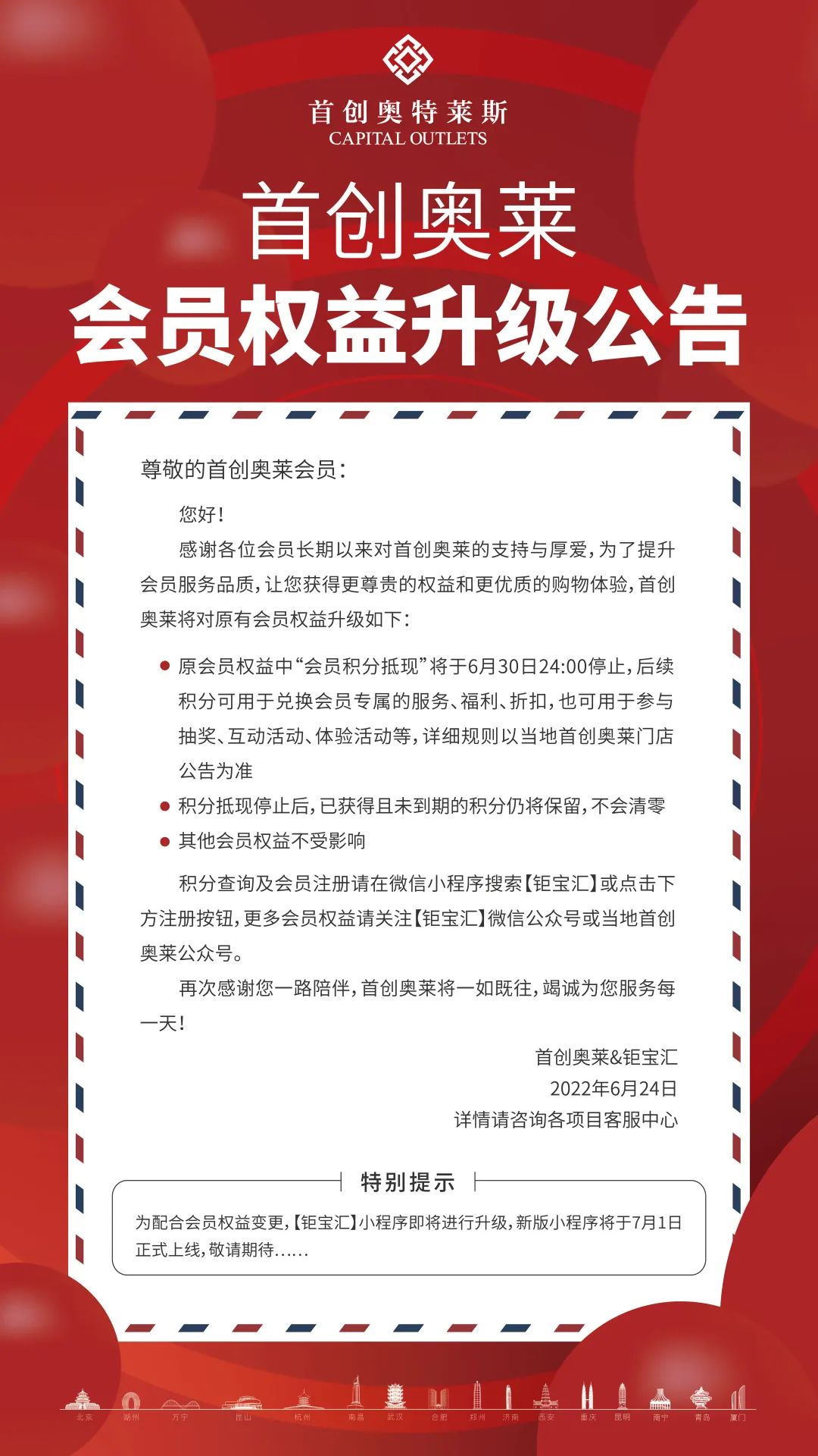 首创奥莱持续推进精益化运营再有重磅动作。2022年7月1日,首创奥莱会员系统将再次升级,这是继2020年10月19日,首创奥莱联合阿里巴巴开发的大会员体系上线后,又一次重磅升级,也是首创奥莱加速数字化转型,全力推进LEAD(标签化、体验化、家庭化、数字化)奥莱的又一关键举措。