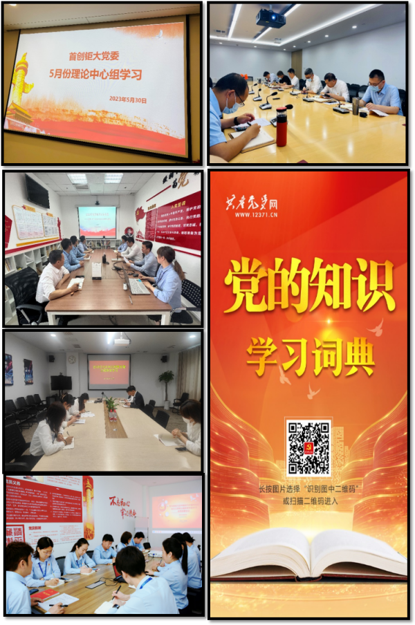 首创钜大党委、昆明公司党支部、重庆公司党支部、青岛公司党支部、北京公司党支部、济南公司党支部、郑州公司党支部、武汉公司党支部等充分落实主题教育“学思想、强党性、重实践、建新功”的总要求,充分利用理论中心组、书记讲党课等方式集中学习,以及学习强国、创云书园平台等载体开展日常自学,杭州公司党支部创新引入党的知识学习词典,学习党的二十大报告、中国共产党章程,以及习近平总书记的著作,平台以词条形式为全体党员提供知识解读,方便党员们随时随地进行学习和查询。