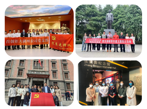 2023年4月21日,钜大本部第二党支部组织党员赴张秉贵纪念馆开展了“一团火”主题党日活动,学习“优秀共产党员”、“全国劳动模范”张秉贵同志的“一团火”精神。2023年4月26日,首创钜大本部第三党支部与本部第一党支部共同组织参观了北大红楼,感受波澜壮阔的历史瞬间,感悟伟大建党精神。2023年5月10日,首创钜大南昌公司党支部与天兴和顺苑社区党支部联合组织党员前往小平小道陈列馆开展学习贯彻习近平新时代中国特色社会主义思想主题教育暨联学共建主题党日活动,通过深化与社区党支部的联合共建,加强社群交流,赋能私域增长。2023年5月17日,湖州公司党支部开展5月份主题党日活动,组织公司党员先锋队“钜人队”和部分积极分子到湖州德清县洛社镇砂村红色经典文化礼堂参观学习。