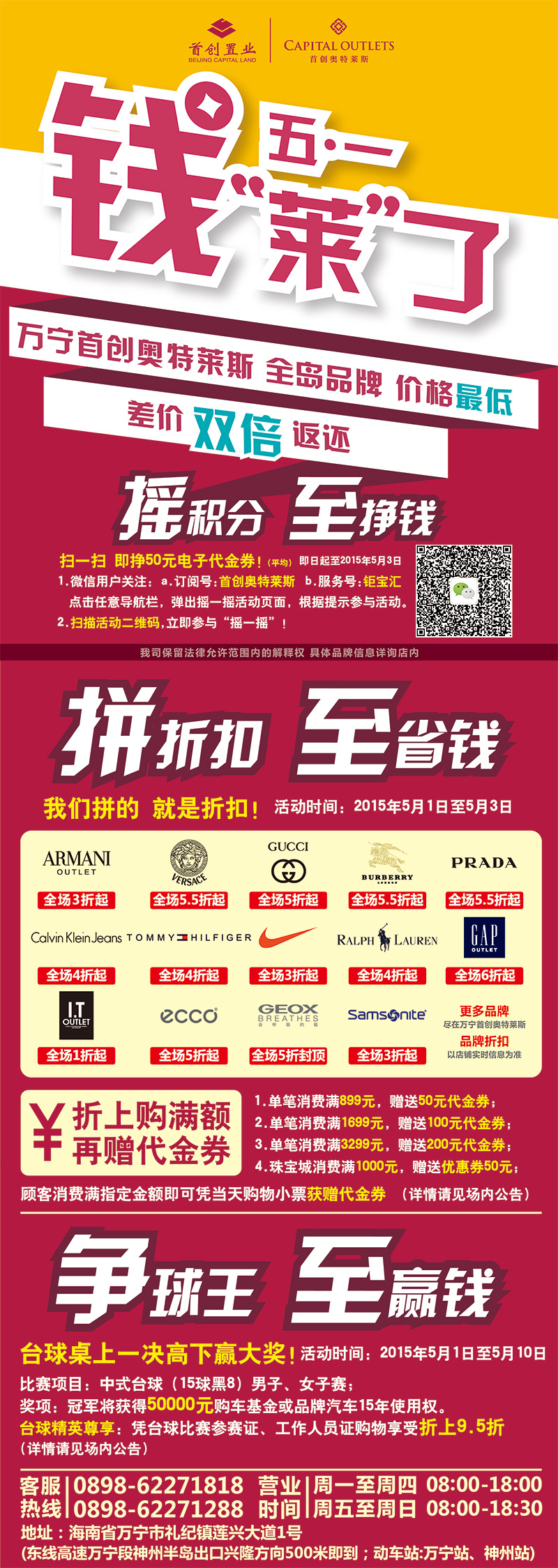 这个五一,到万宁首创奥特莱斯可以任性潇洒,享休闲购物时尚生活。