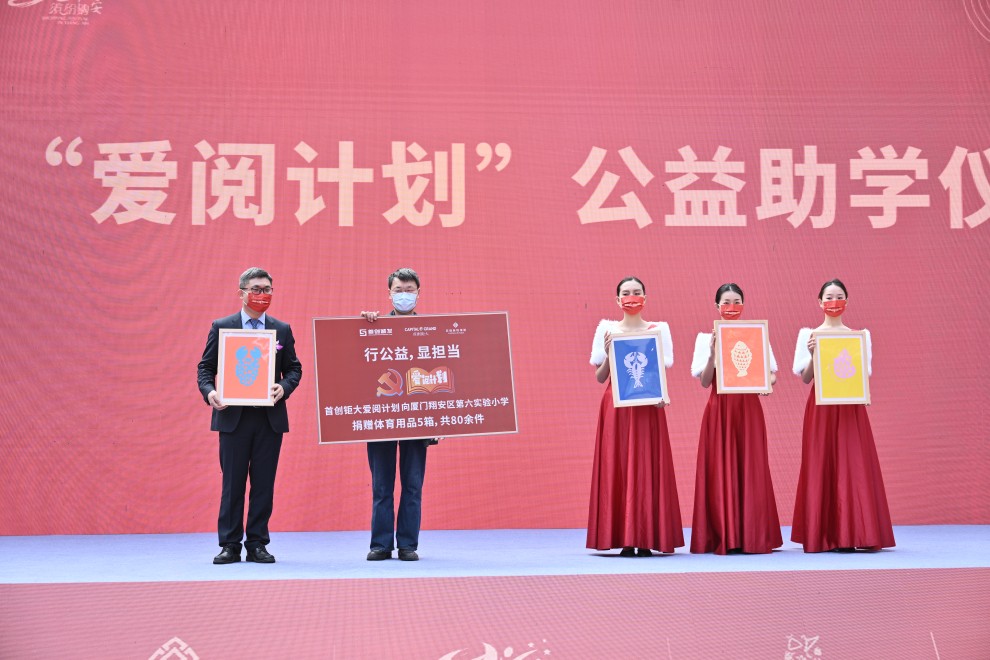 2022年12月,厦门首创奥特莱斯在项目筹备期间为厦门翔安区第六实验小学图书室建立了“爱阅计划图书角”,并捐赠了价值数万元的爱心图书。同时,在开业典礼上,向该小学又捐赠了体育教具。