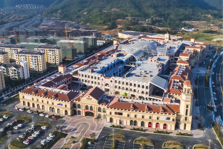 项目地址:杭州市富阳区江滨东大道889号, 坐落于杭州富阳区黄公望景区,南邻杭富沿江公路、东临横山,给购物增添怡然氛围感